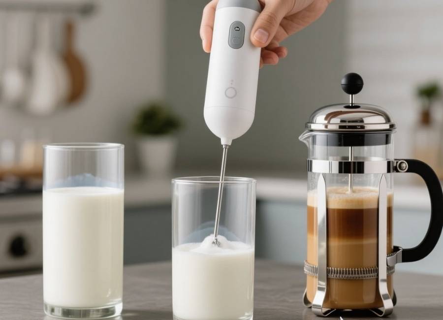 - How to do it: Pour your milk mixture into a tall glass, insert the frother just below the surface, and turn it on. As the foam builds, lower the frother to froth the remaining liquid milk. It should be thick and ready in under a minute.