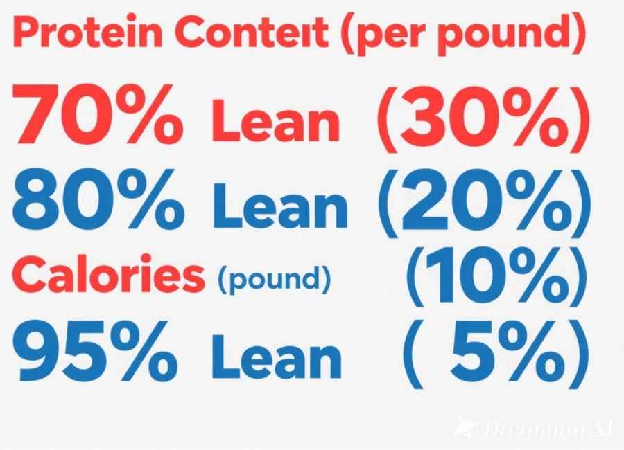 The fat percentage in ground beef plays a significant role in determining the calorie and protein content per serving. When ground beef is higher in fat (e.g., 70% lean), there is less room in the pound for protein because fat takes up more of the total weight. Conversely, leaner beef (e.g., 90% to 95% lean) has less fat and more protein by weight, making it ideal for high-protein, low-calorie diets.