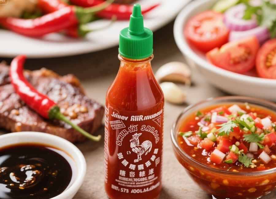 Sriracha – Hot sauce made from chili peppers, vinegar, garlic, sugar, and salt.