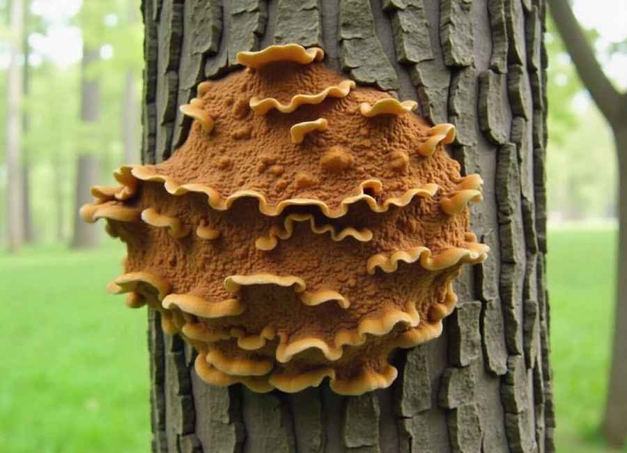 Some shelf fungi and bracket fungi also grow on trees and can confuse new foragers. These types usually look like shelves or brackets sticking out from the trunk, with visible pores underneath.