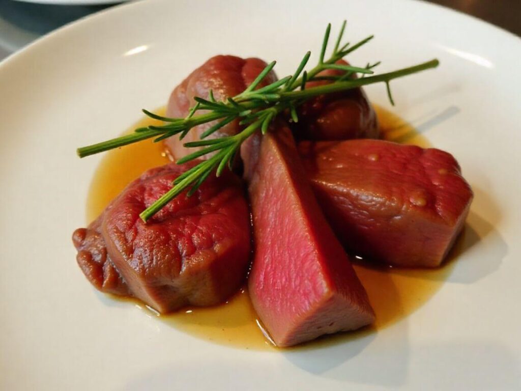 Raw beef cheek starts firm and tough, but slow cooking transforms the collagen into glossy strands that pull apart easily while maintaining shape for elegant presentation.