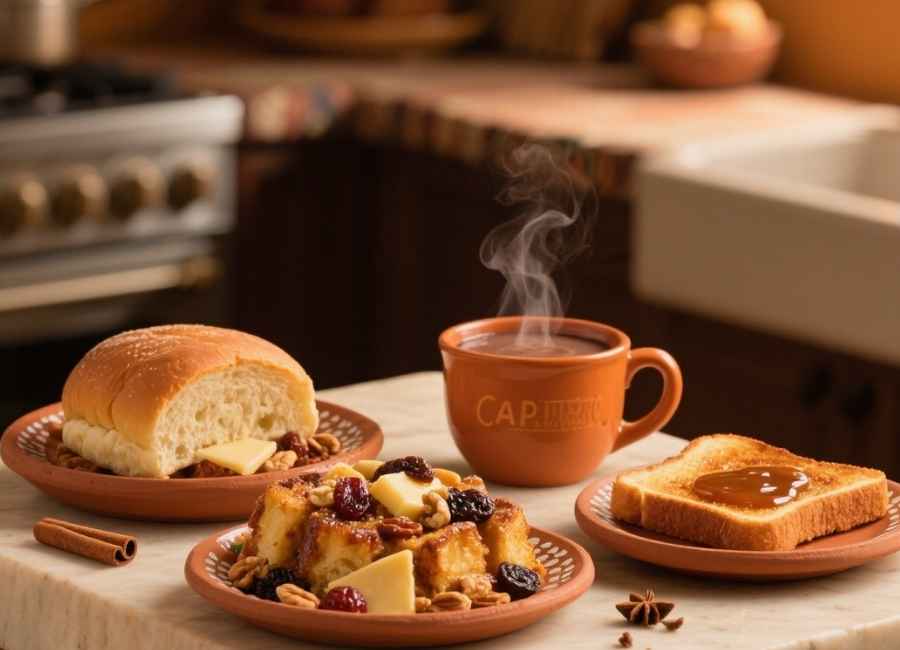 • Capirotada (Mexican Bread Pudding): Stale bolillos are given a second life in this traditional dessert. The bread is layered with a syrup made from piloncillo (unrefined cane sugar), cinnamon, and cloves, then baked with nuts, dried fruit, and cheese. (Kitchens, 2025)